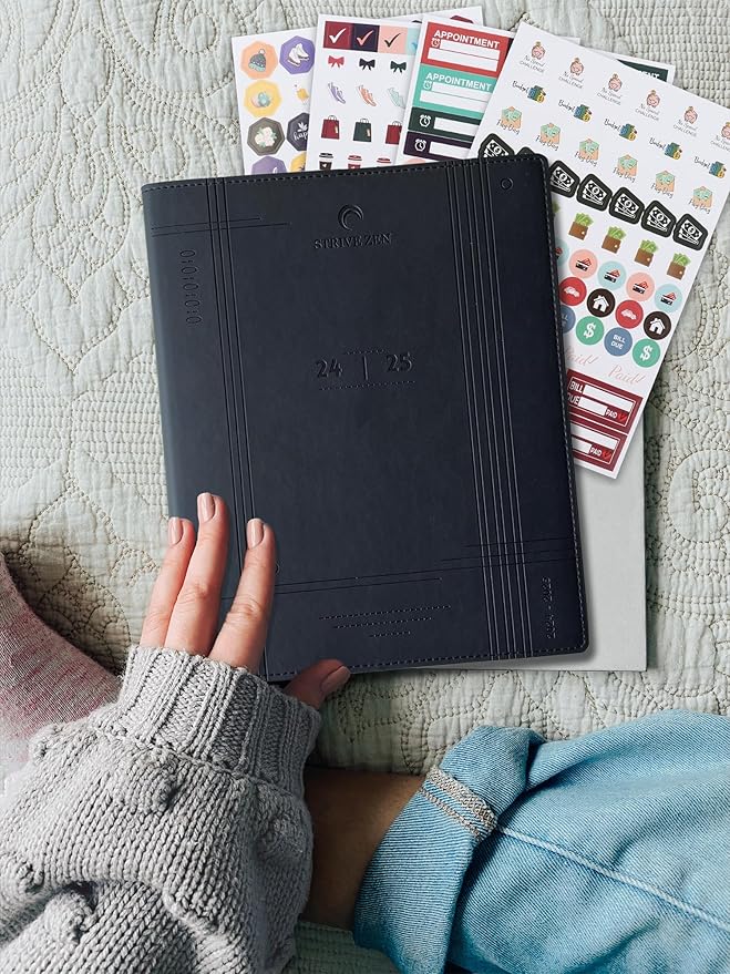 - SPECIAL FEATURES: Includes a personal information page with yearly goals, 2-year reference calendar, pages for names, addresses, and phone numbers, monthly tabs, pockets, extra notes pages, sticker sheet, pen holder, two string bookmarks, and a string enclosure.