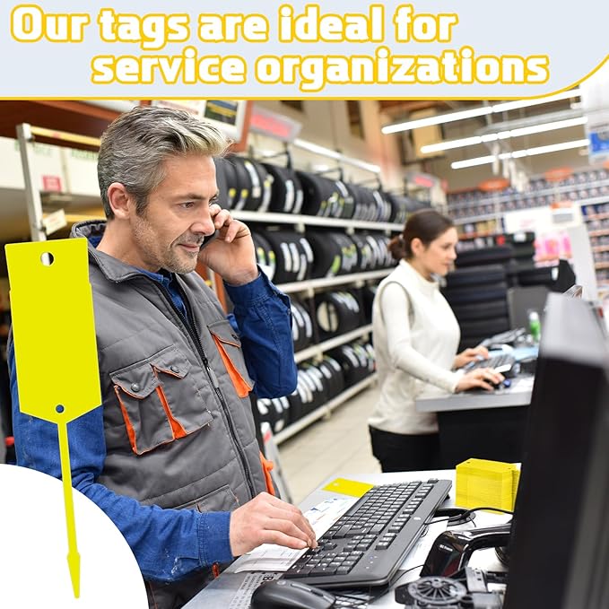 Lewtemi 1000 Pieces Self Lock Arrow ID Key Tags Car Parts Tags Key Ring Repair Labels for Office Automotive Shop Supplies(6'' X 1 2/5'',Yellow)