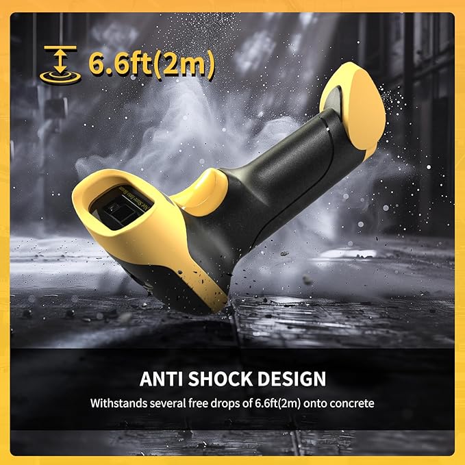 - ✨Professional Anti-Shock Silicone Design - The silicone protective cover can avoid the scratches and friction while falling from the height of 6.56 feet; the technical of IP54 sturdy which protect the wireless barcode scanner from dust and moisture.