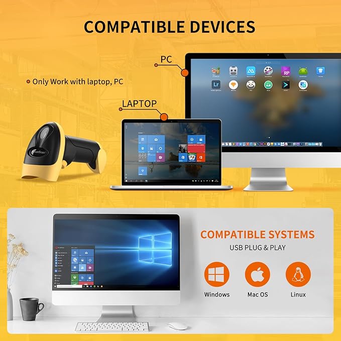 - ✨Plug and Play - Just plug into a standard USB port and start your scan, no drivers required, no battery; works with Windows, Linux and Mac OS systems. Works with Quickbook, Word, Excel, Novell, and all common software.