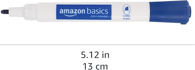 Amazon Basics Dry Erase Markers For Whiteboards, Chisel Tip, Low-Odor, Blue, Pack of 12