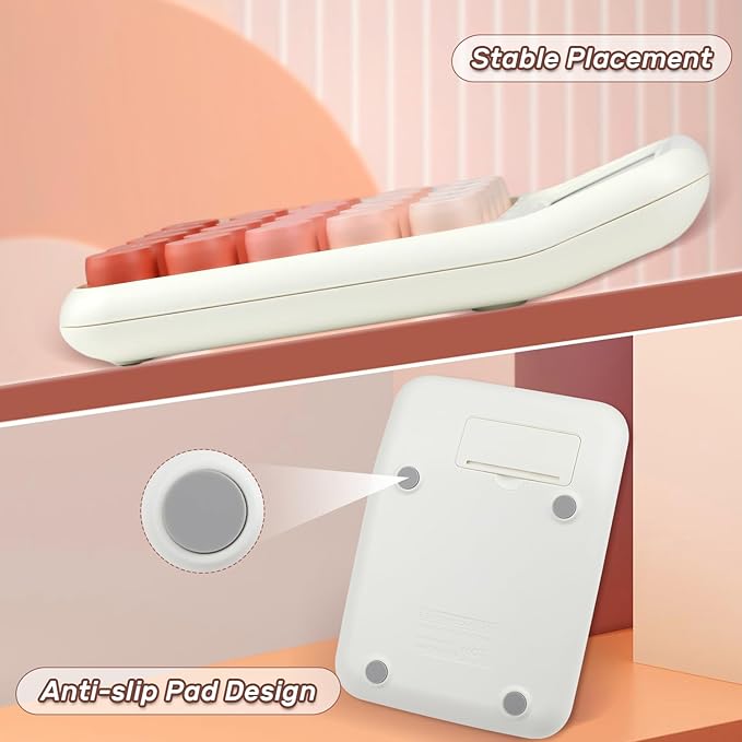 - 【Mechanical Switch Calculator】Imitating the knocking feel of a mechanical keyboard, the key operation is fast and accurate, bringing a pleasant experience. The touch of your fingers and the unique clicking sound are addictive. Large button, candy color.Large LCD screen,12-digit display, vertical back,15-degree angle for easy-to-read calculator.