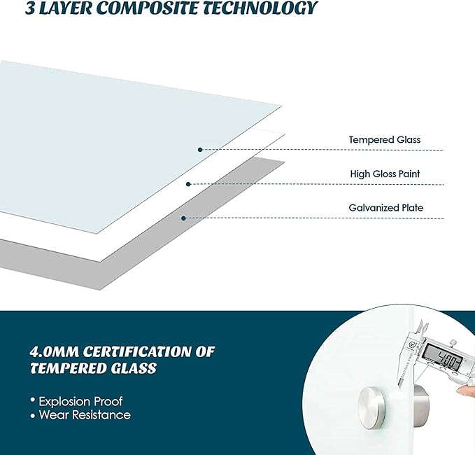 - 【Durable】The board is made from a tempered decorative glass that is up to ten times stronger than regular glass. It can withstand the impact from a golf ball, hammer, so your investment is safe in this board.