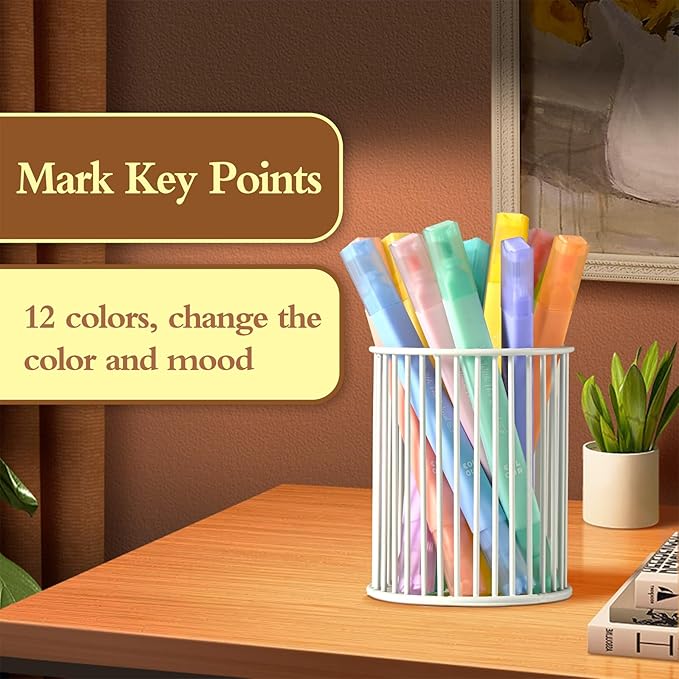 - 12 COLORS: Cute highlighters that are perfect for color coding and to highlight favorite book passages or notes.