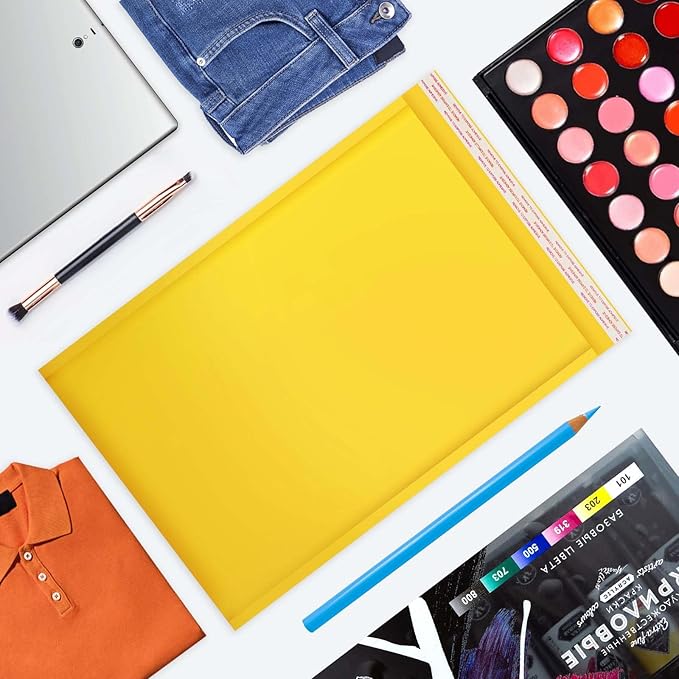 Dasen Kraft Bubble Mailers 10.5x15 Inch 50 Pcs,Small Self-Sealing Waterproof Cushioned Mail Shipping Bags,Yellow Padded Envelopes #5