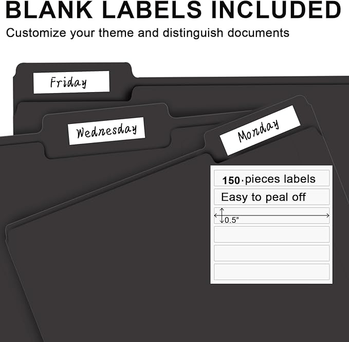 - PACKAGE INCLUDED: This bulk pack includes 150 letter size file folders (50 of each position) and 150 blank labels, idea for any home, office, or school project, providing you with plenty of storage space for all of your important documents