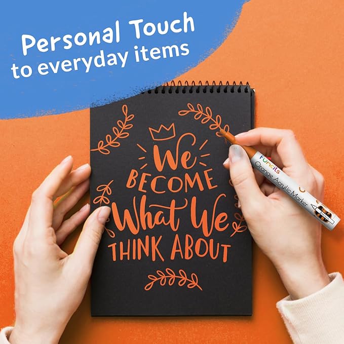 - Orange Felt Tip Pens: Long Lasting, while other Orange acrylic markers crack under heavy use. Our richly pigmented acrylic paint marker pens set stays fray free. Conform to ASTM D-4236 and EN-71.