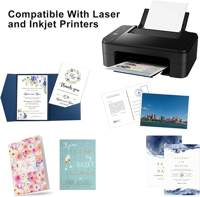- 【Versatility】:Normal for inkjet printers, laser printers, and copiers (refer to the printer manual before ordering to ensure that you can print on 92 lb cover/250 gsm paper).