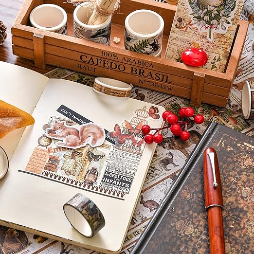 - 👍【CLASSIC ART DESIGN】This washi tape has a strong retro style, featuring a yellowed base color adorned with meticulously designed vintage patterns such as stamps, newspapers, specimens of flora and fauna, building Notes and manuscripts. It takes you back several decades, allowing you to experience the bygone era