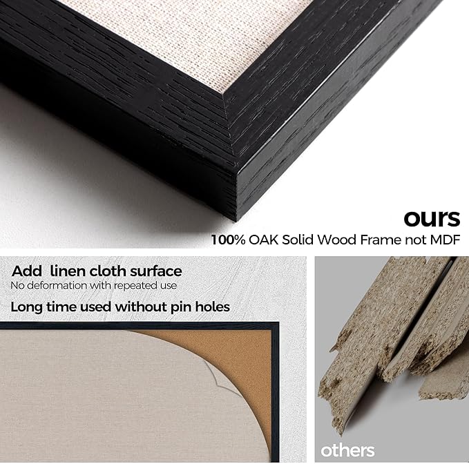 Fun Memories Cork Board Bulletin Board for Office, 20" x 30" Oak Wooden Framed Corkboard, Wall Mounted Notice Pin Board for School Home & Office, Black