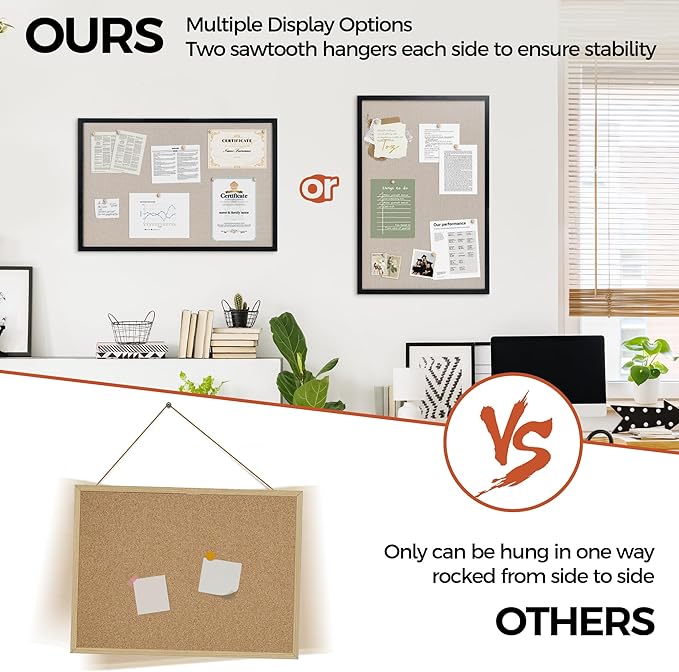 - Unique Design: Easily customize the board orientation to fit your space. Natural cork bulletin board add a classic look to your office or home. Both strong and stylish, it will be a great addition to your space