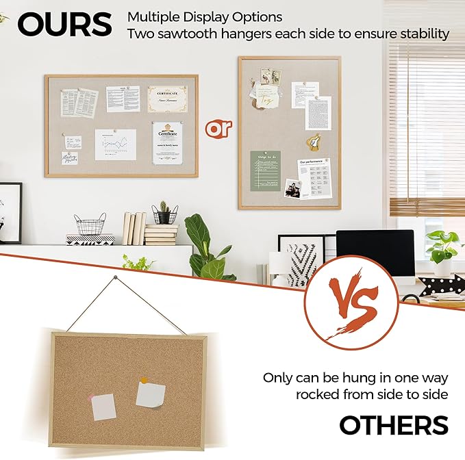 - Unique Design: Easily customize the board orientation to fit your space. Natural cork bulletin board add a classic look to your office or home. Both strong and stylish, it will be a great addition to your space