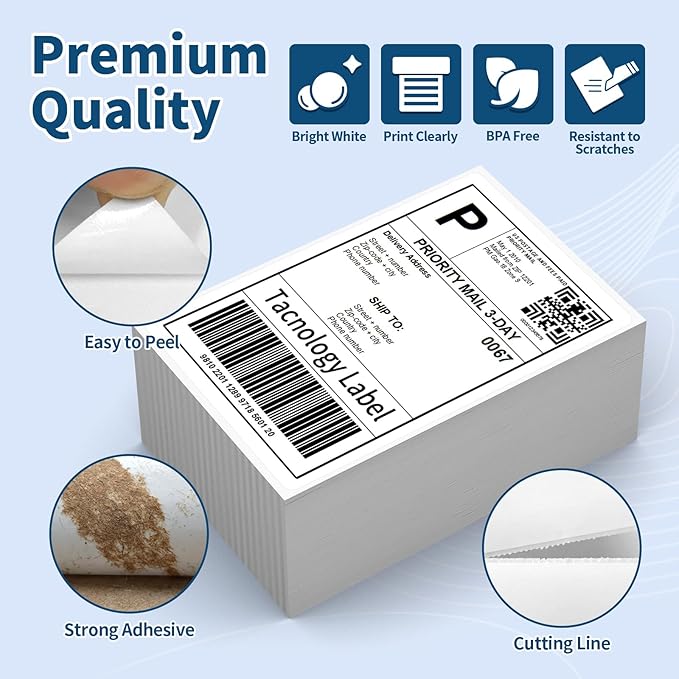 - Exceptional Print Quality: 4"x 6" Shipping Labels are Smudge-Free & Fade-Resistant,Jam-Free, ensuring a seamless printing experience with easy-to-read barcodes, avoiding time-consuming printer issues.