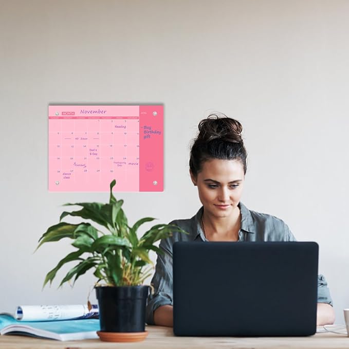 Glass Dry Erase Whiteboard, Monthly Calendar Whiteboard, Frameless Glass White Board for Home, School, Office, Pink Surface, 12" x 16"(GlassA-PK-3040)