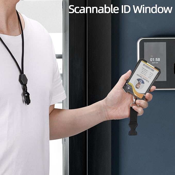 - Stylish Veneer Design: This heavy-duty id holders for badges boasts a cool and fashionable appearance. It even incorporates a carbon fiber plate on the back, adding to its aesthetic appeal and durability.