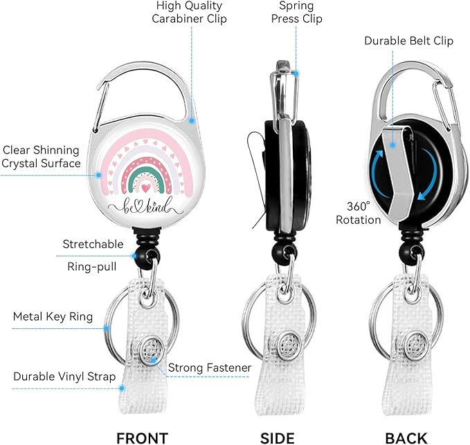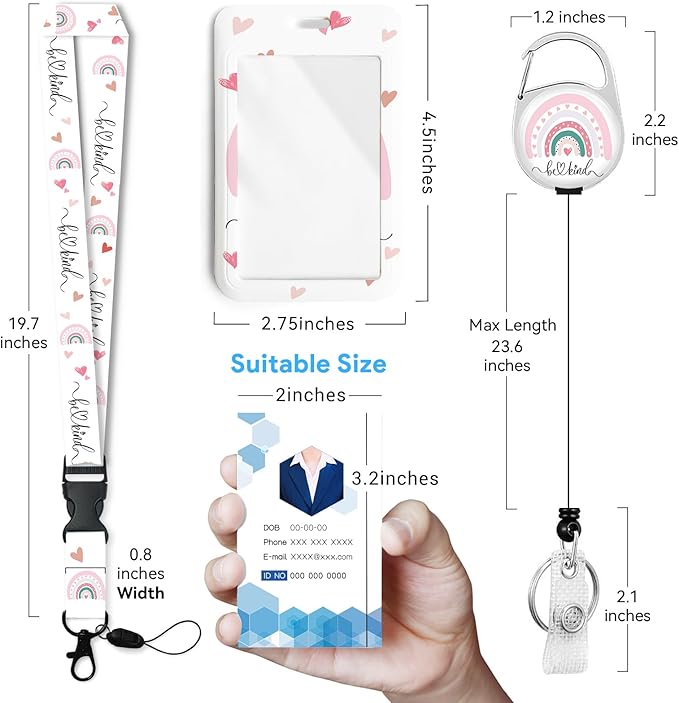 Rainbow Be Kind Badge Holder with Retractable Reel and Breakaway Lanyard,Badge Clips Retractable Heavy Duty Badge Reel,Funny Keychain,ID Holder with Breakaway Lanyard for School Nurse Office Teen