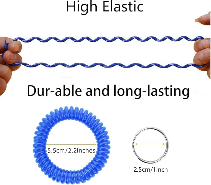 - 2.2 inches spiral wrist fits any size wrist with a 1 inch metal keyring to hold keys.