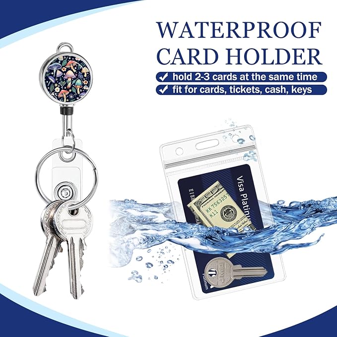 - Novelty Design: This necklace ID badge lanyard and retractable badge reel features a striking design inspired by the unique patterns of mushroom. The earthy and whimsical aesthetic of the mushroom pattern adds a touch of natural charm and creativity to the lanyard, making it a stylish and functional accessory for carrying ID badges. Package Included: ID lanyard retractable reel x2, thickened waterproof ID holders x2