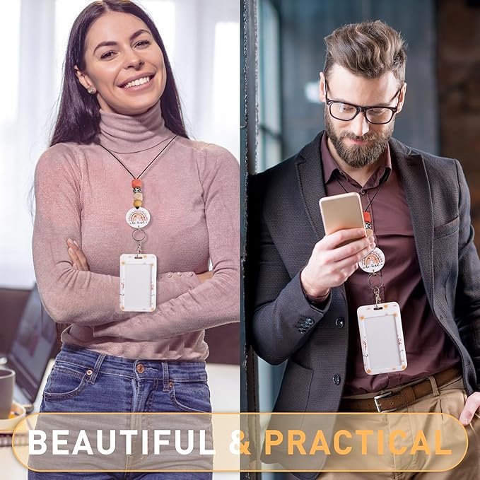 - Fashionable Badge Accessories: Elevate your style with the Boho ID badge holder with inspirational quotes. Its elegant design is complemented by four skin-friendly silicone beads, 3 natural wood bead, and a graceful acrylic plate, adding a fashionable touch to your attire