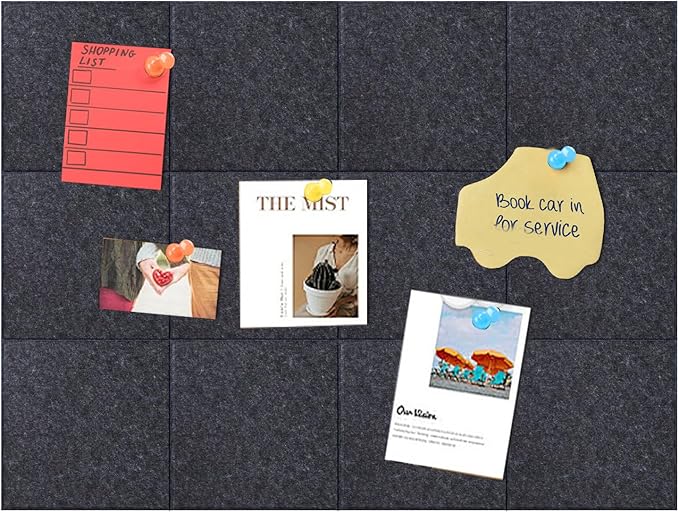 - 【Cork Tiles Alternative Size】: Cork board for office has 12 pack, one count size is 11.8''x11.8''x0.35''/30x30x0.9 cm, with 30 colored pin, and 72 pieces of double-sided acrylic tape. You can use the felt board customize your walls.