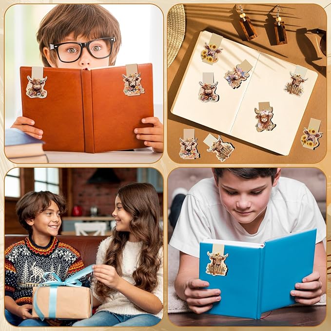 - 【Cute Design】Our magnetic bookmarks use highland cow and flower elements, which are more vivid and cute than other bookmarks. You can use it as a decoration for books to make your reading more interesting.