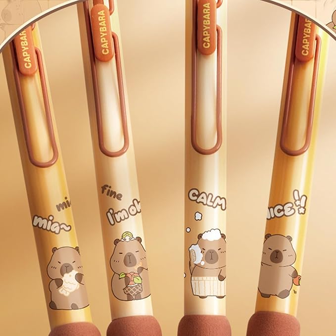 - Cute Retractable Pen: The cute gel ink pens are made of plastic material, 4 pieces pens with cute capybara patterns, so cute, perfect pens for women girls.