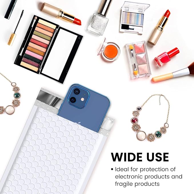 - White Bubble Mailers #000: The Outer size is 4x8 inch, while the inner size is 4x7 inch. Suitable to transport for jewellery, makeup, cards, phone case, Lips, photos,handcraft and more. Great for small business packing,shipping gifts mailer.