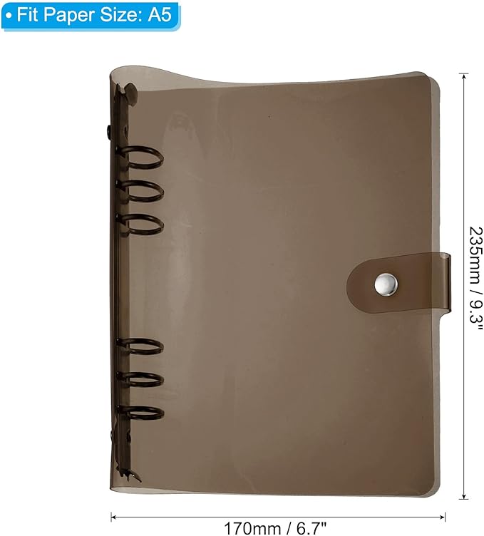 - Specification: Size: 235x170mm/9.3x6.7Inch (L*W); Fit Paper Size: A5; Material: Soft PVC and Metal; Cover Color: Black; Rings Color: Silver Tone; Packing List: 1Pcs x A5 Clear Binder Covers