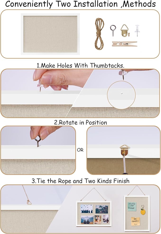 - 【Easy to Use】:The Corkboards we provide detailed instructions are very easy to install, two styles of hooks also provide you with more options for mounting vertical or horizontal.We have also pre-installed hooks for your convenience