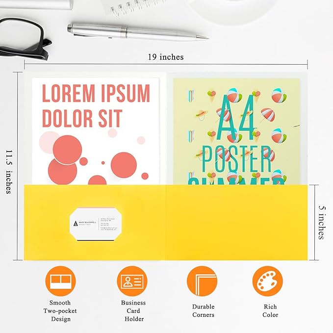 25Pcs Yollow Folders with Pockets -2 Pocket Folders,Pocket Folders for Documents,Cute Paper Folders for Filing Cabinet,School,Office,Resume Portfolio