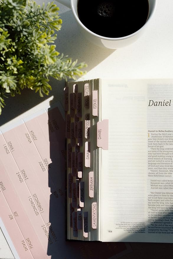 - Simple to Install: The Bible tabs pink have pre-scored lines for easy folding and are equipped with quality adhesive, securing a perfect, even fold every time. The set includes tabs for the Old and New Testament, Catholic Bible tabs, and blank tabs for personalization, making them perfect for all Bible readers and journaling enthusiasts.
