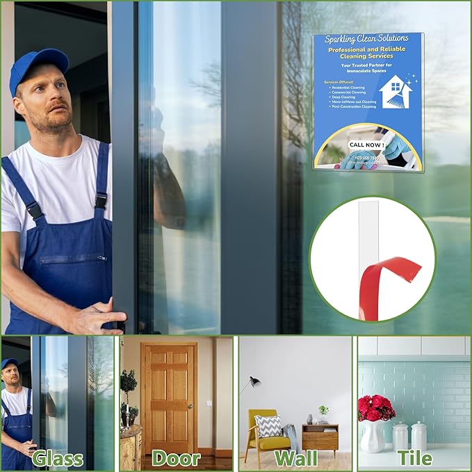 - ✔ 【Easy to Assemble】 The sign holder offers multiple installation options: use the included adhesive tapes to stick it on the wall, magnetic strips to attach on a refrigerator or blackboard, or simply use it as a rigid print protector without any tapes. No drilling required, ensuring a hassle-free setup.