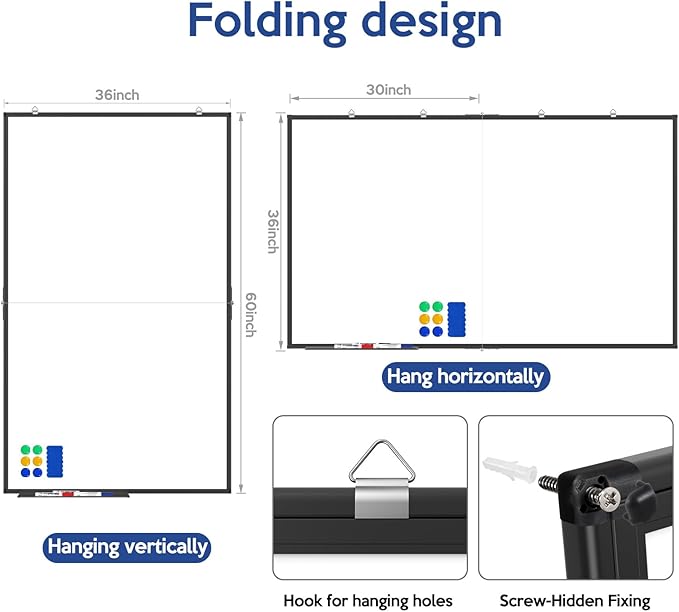 - Spacious and Portable: Our 60x36 inch foldable large whiteboard provides a generous writing and display area, perfect for classrooms, offices, and home education. Its foldable design ensures easy portability for use on the go.