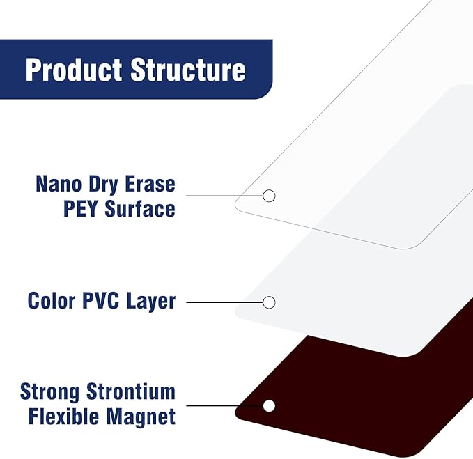 - Reusable magnetic labels: The surface is made of PET dry erase film, dry erase magnetic labels writing smoothly and easy to erase.