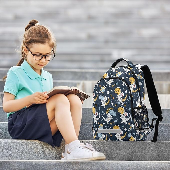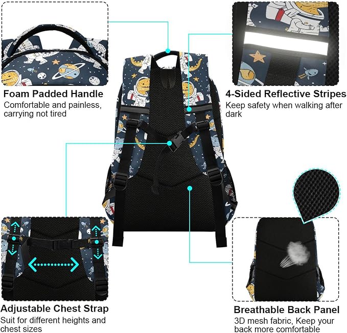 MNSRUU Laptop Backpack with Chest Strap, Astronaut Dinosaur School Backpack, Travel Hiking Backpack for Boys Girls Teen Adult, Rucksack, Knapsack