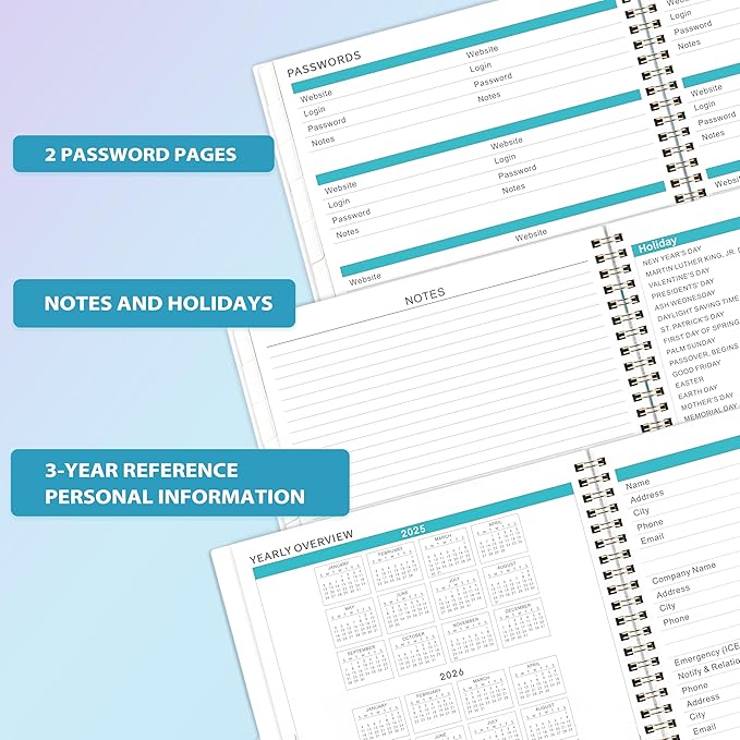 - Good Writing Experience - The 2025 planner use high-quality paper, you do not have to worry about ink penetration. And the coil design is very flexible when turning the page, can be placed flat when writing, so that you can write better.