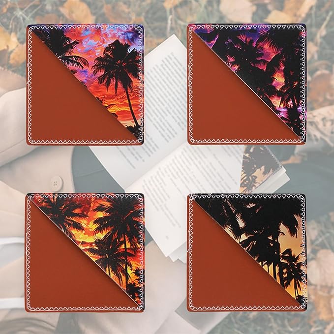 4 Pieces Leather Bookmarks, Cute Book Accessories for Reading Lovers, Page Markers for Women Men Kids Students Teachers Retirement Birthday Gift (Sunset)
