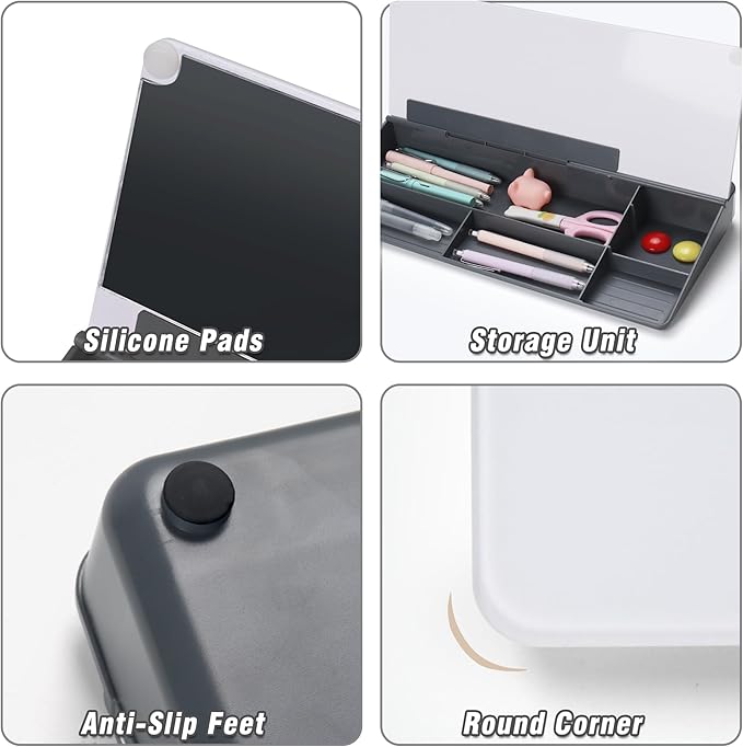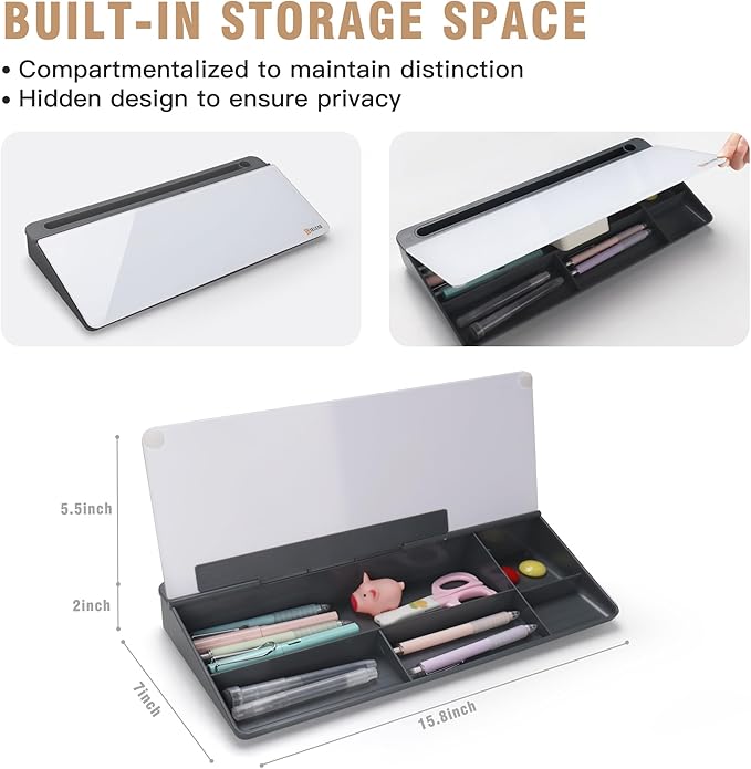 - 💯MULTIFUNCTIONAL: Writing+Storage+Hold iPad/phone/pen+Keyboard Stand, our desktop white board is an all in one multipurpose desk board buddy. Equipped with 2 white dry erase marker and 1 blue eraser. One purchase, All in place!