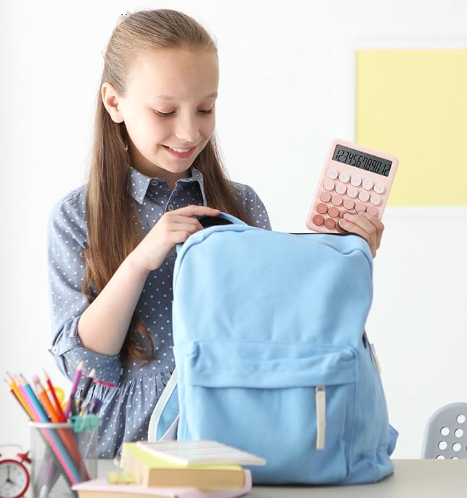 Calculator, Desk Calculators, Cute Pink Calculator, 12 Digit with Large LCD Display, Basic Standard Calculator, Big Button, Aesthetic Calculator, Mechanical Calculator for Office School