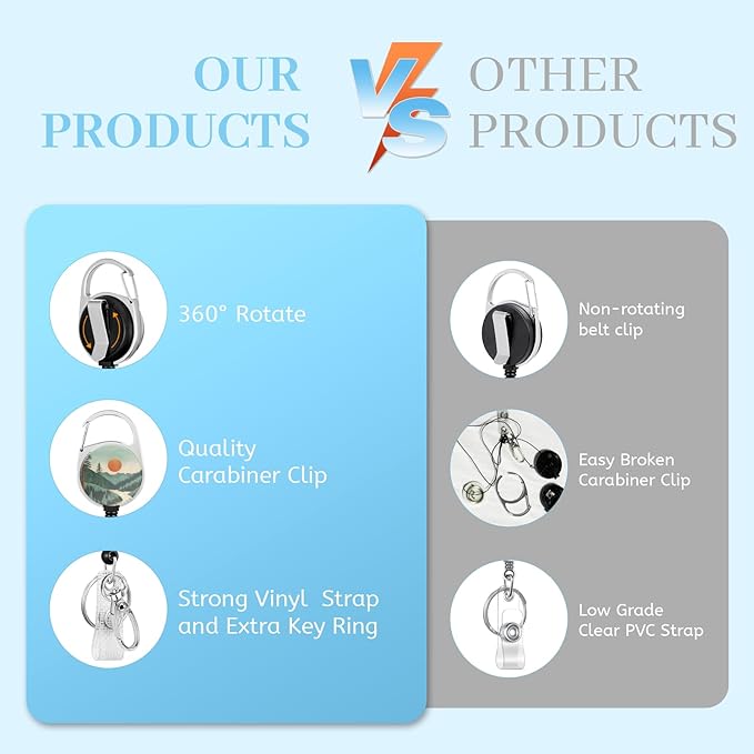 - 【Retractable Badge Reel】The funny cute heavy duty badge reel made of quality plastic and steel, badge reel is super wear-resistant, enduring and comfortable.The badge holder retractable clip with 360°rotating carabiner clip, which is easy to use and flexible.