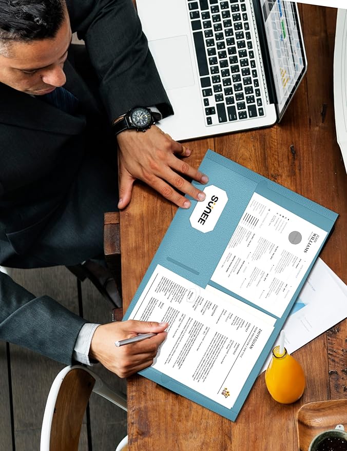 - Multifunctional: Each folder for documents has a business card holder design, making it a great choice for students, teachers, and school administrators. 2 pocket folders are traditionally used as school supplies, but they also work well for home projects, receipts, tax paperwork, and more