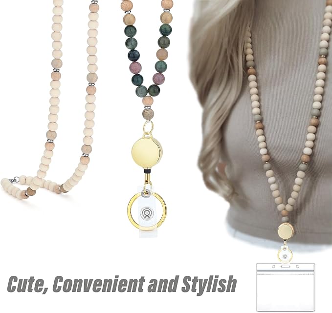 - Stylish Retractable Lanyard for ID Badges - Natural wooden bead lanyards for ID badges. Retractable, stylish and cute. Great as lanyards for keys, teacher lanyard for ID badges, lanyards for id badges holder, cute keychain lanyard for women, lanyards for cruise ship cards, cruise lanyard for ship cards.