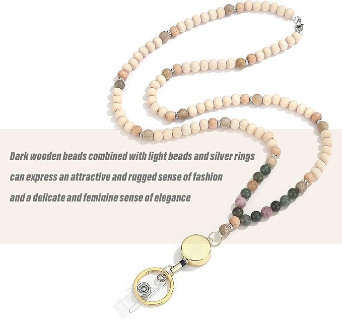 - Premium Quality - The cute lanyard for id badges is made from 8mm natural wooden beads and 8mm genuine India Agate, with stainless steel lobster clasp and key ring. Every natural bead is high quality natural bead and has been carefully selected manually one by one.