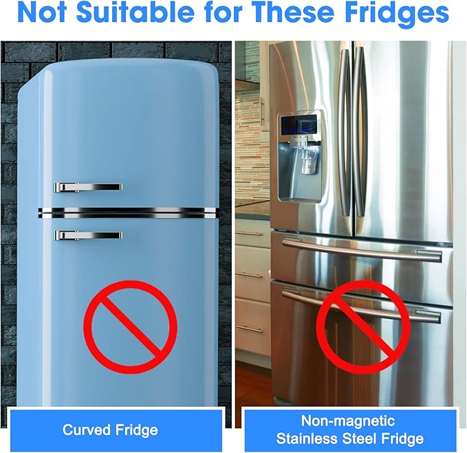 - Anti-sliding & Anti-scratch & Sturdy Design. This magnetic clear acrylic dry erase board will not slide down even you slam the fridge door. They also do not scratch your fridge. Note: this white board is not suitable for true stainless-steel fridge or curved fridge/refrigerator.