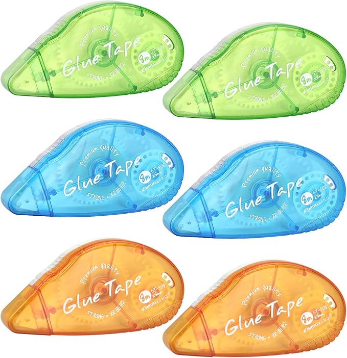 Tamaki 6 Pack Double Sided Tape Roller, Adhesive Scrapbooking Glue Tape, Adhesive Tape Dispenser Runner for Crafts and Arts Projects, Photo Tape for Scrapbooking