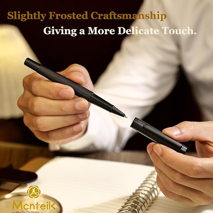 - Perfect Gift of Choice-For the person who has everything, give the gift of MCNTEIK's luxurious matte black rollerball pen - a statement of taste and appreciation. Cradled in a Exquisite Gift Box, with spare black refill.