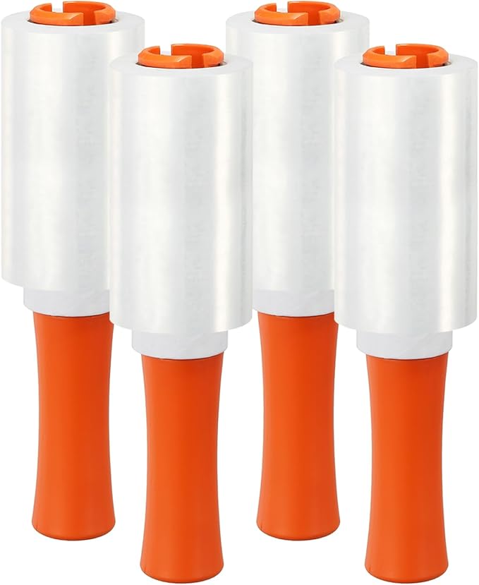 PATIKIL 4.7" x 328 Feet Stretch Wrap Roll, 4 Pack 80 Gauge/20 mic Thick Mini Shrink Stretch Film Industrial Clear Plastic Wrap with Handle for Box Packing Shipping Moving