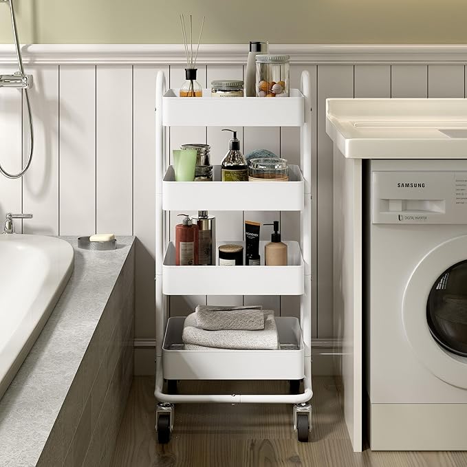 - ๐ ๐๐ฉ๐๐๐ข๐จ๐ฎ๐ฌ ๐๐ญ๐จ๐ซ๐๐ ๐ ๐๐๐ฉ๐๐๐ข๐ญ๐ฒ: This rolling cart organizer provides 4-tier large storage space while saving you floor space to optimize space utilization. Deep baskets(Four shelves were different sizes)are designed for preventing items from dropping.