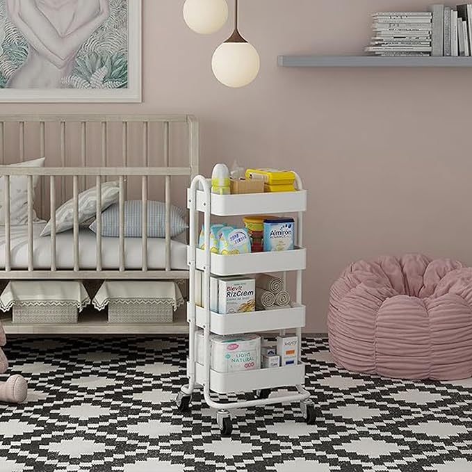 - ๐ ๐๐จ๐ฏ๐ ๐จ๐ซ ๐๐จ๐๐ค ๐๐ฌ ๐๐จ๐ฎ๐ซ ๐๐ข๐ฅ๐ฅ:Our storage cart on wheels is equipped with four 360ยฐ rotating wheels, easy to carry around and change place at will, two wheels are lockable, provide stability.