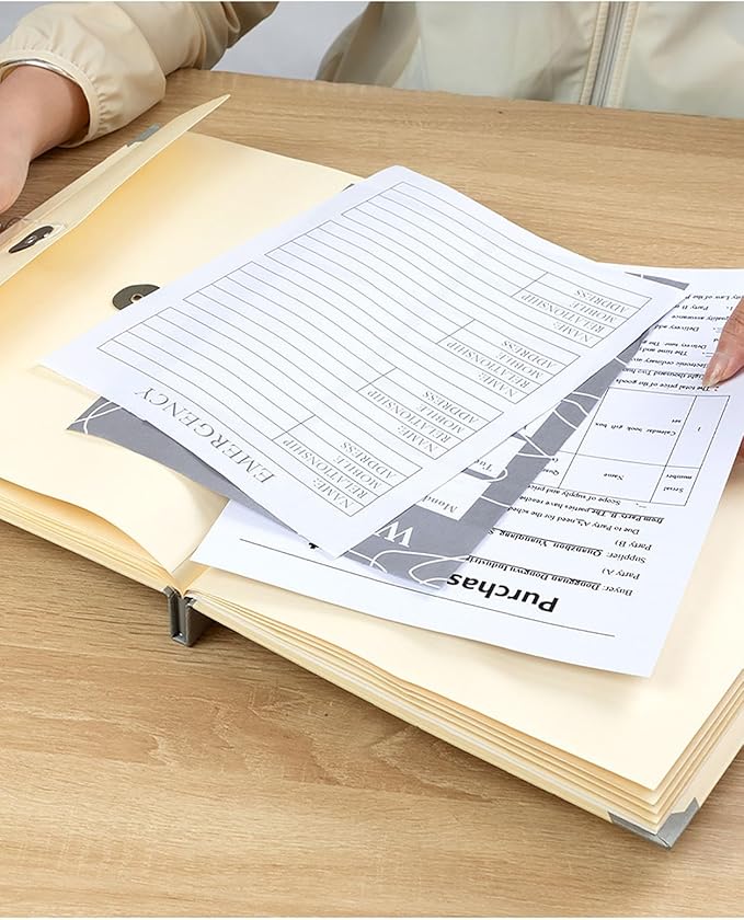 - Accommodates Various Sizes -Designed to hold 8.5¡± x 11¡± or A4 papers in spacious envelopes, while smaller compartments store passports, photos, gift cards, and other compact items. Vellum pockets are included for safeguarding tiny essentials like hair samples.